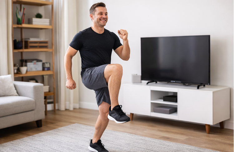 If you’re working out at home, the key is combining low-impact fat-burning movement with strength training that protects your knees and lower back.